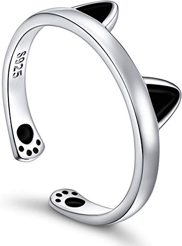 Anillo de plata de ley 925 con diseño de gato con orejas negras