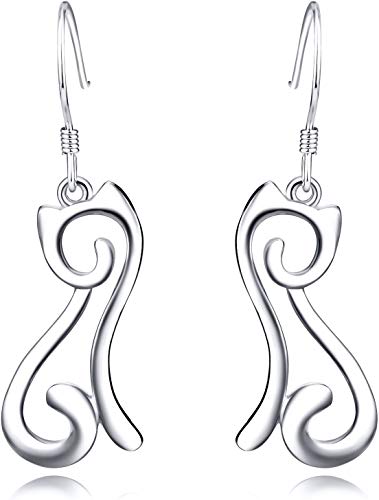 Arete colgante de plata de ley con diseño de gato