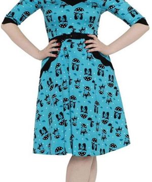 Vestido turquesa con gatitos negros y lluvia – Voodoo Vixen